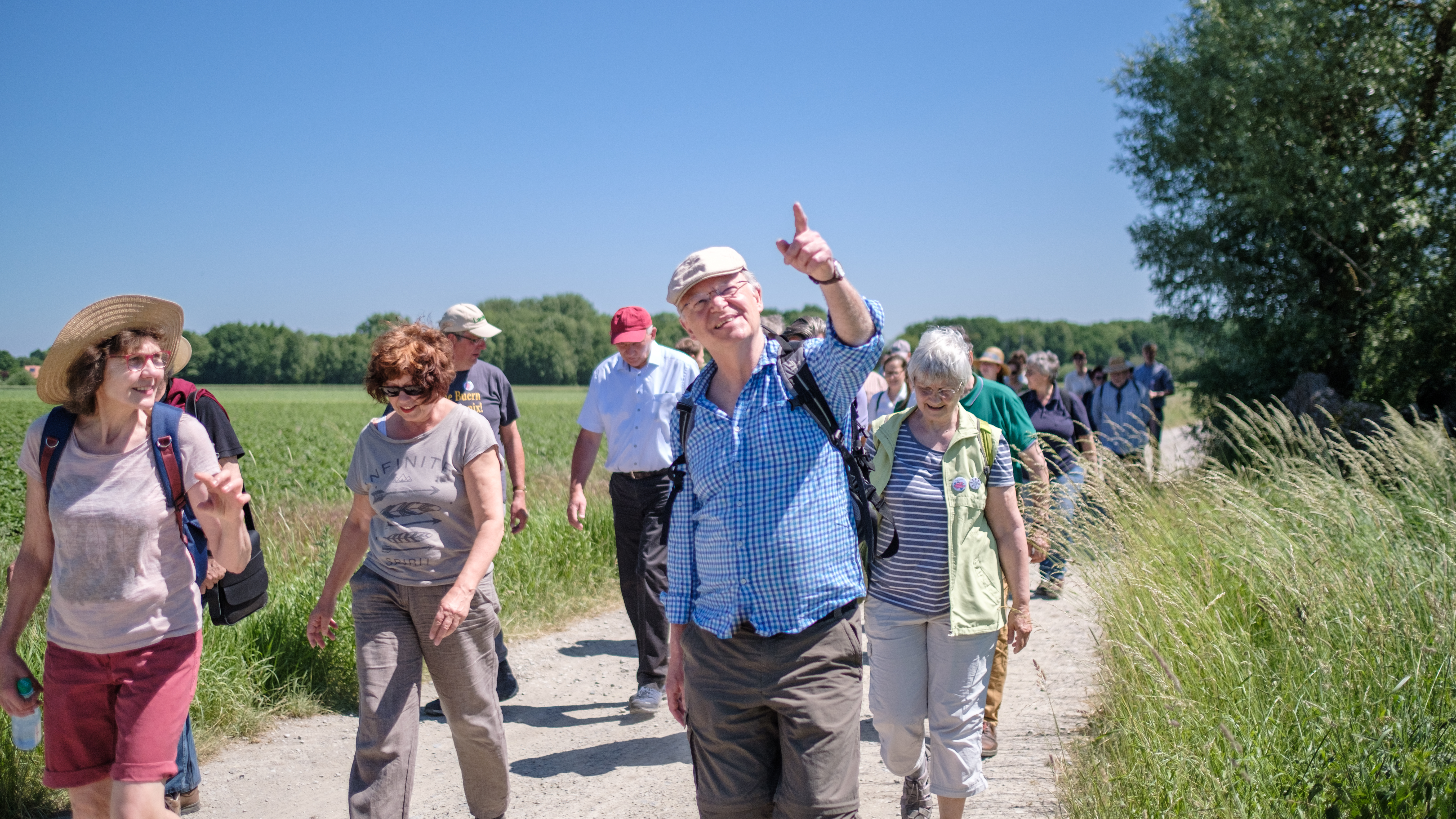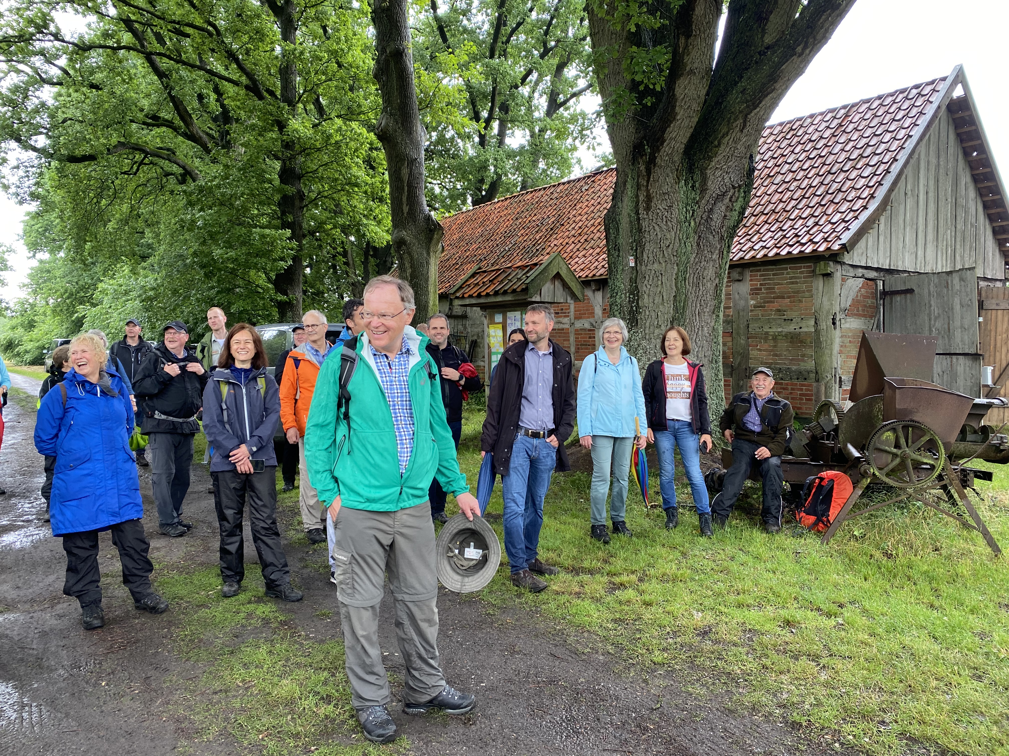 Die erste Tour führte Stephan Weil und die rund 40 Mitwandernden ins Wendland: Auf dem Großen Rundlingsweg im Landkreis Lüchow-Dannenberg ging es auf 15 Kilometern vorbei an weiten Feldern und durch historische Fachwerkdörfer. Bei einem Zwischenstopp traf die Gruppe auf die Fernsehmoderatorin Tine Wittler, die im Wendland ein Kulturcafé betreibt.