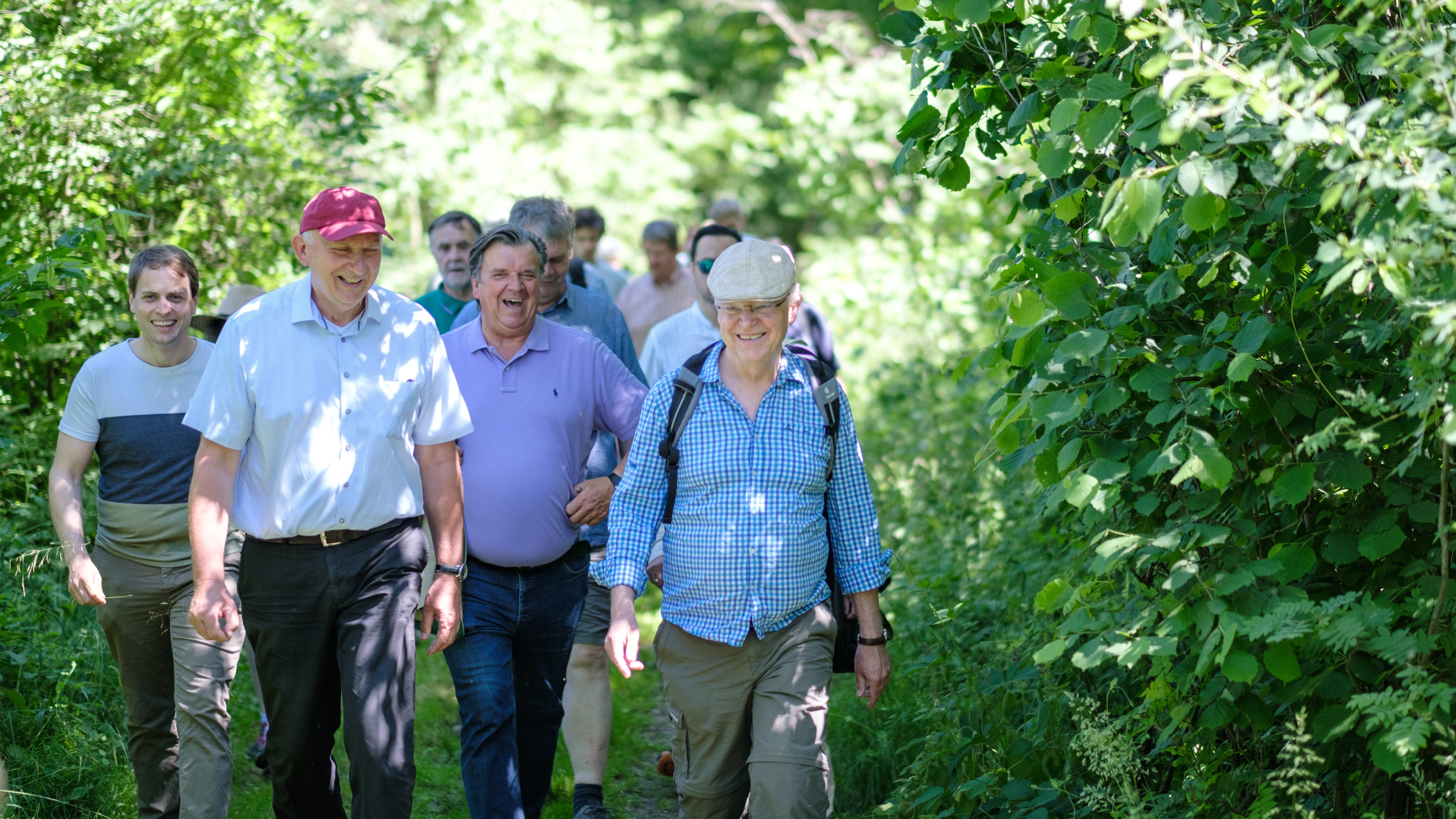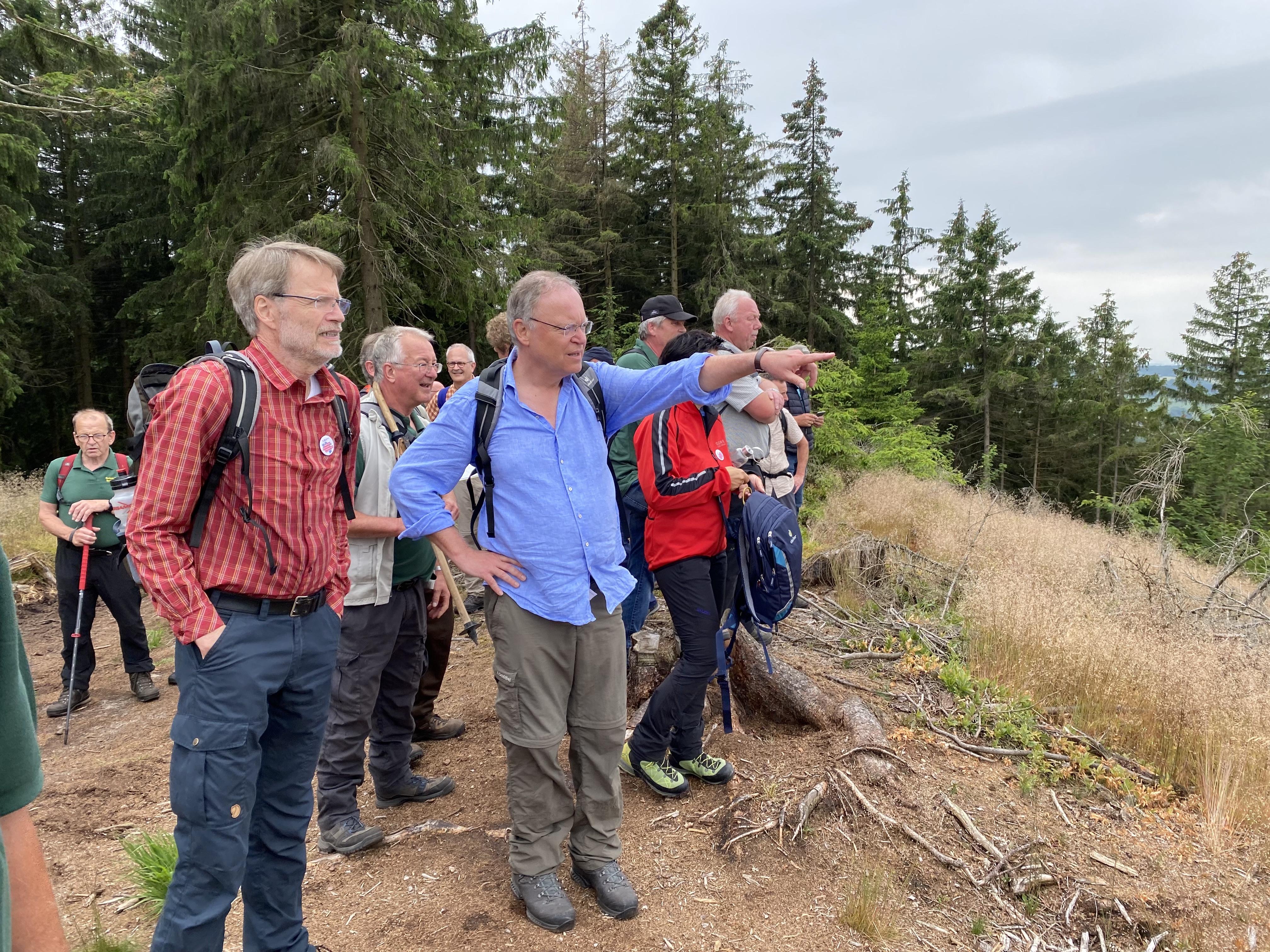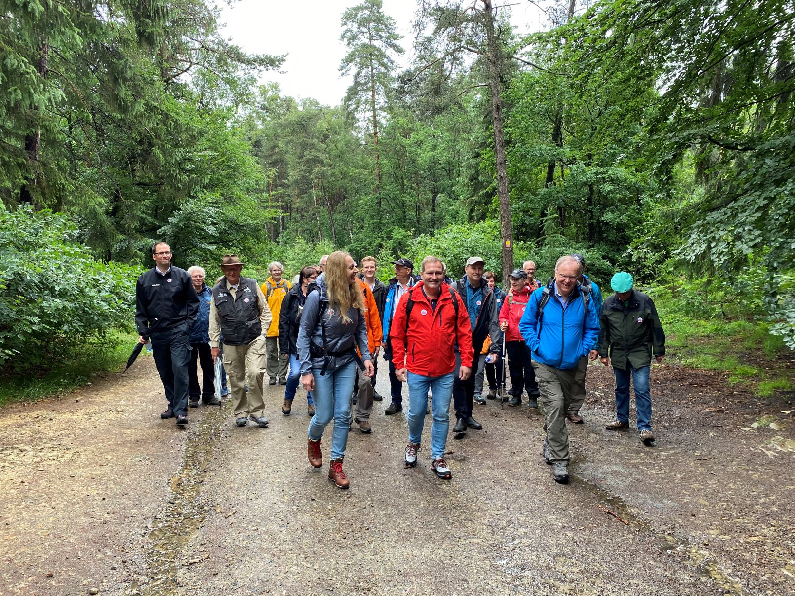 Ein Kontrastprogramm erwartete den Ministerpräsidenten bei der zweiten Wanderung: Auf dem Elm-Kreisel bei Schöningen im Landkreis Helmstedt führte der Weg durch Norddeutschlands größten Buchenwald. Die Schatten spendenden Bäume waren bei sommerlich heißen Temperaturen ein echter Segen für alle Wanderer*innen.