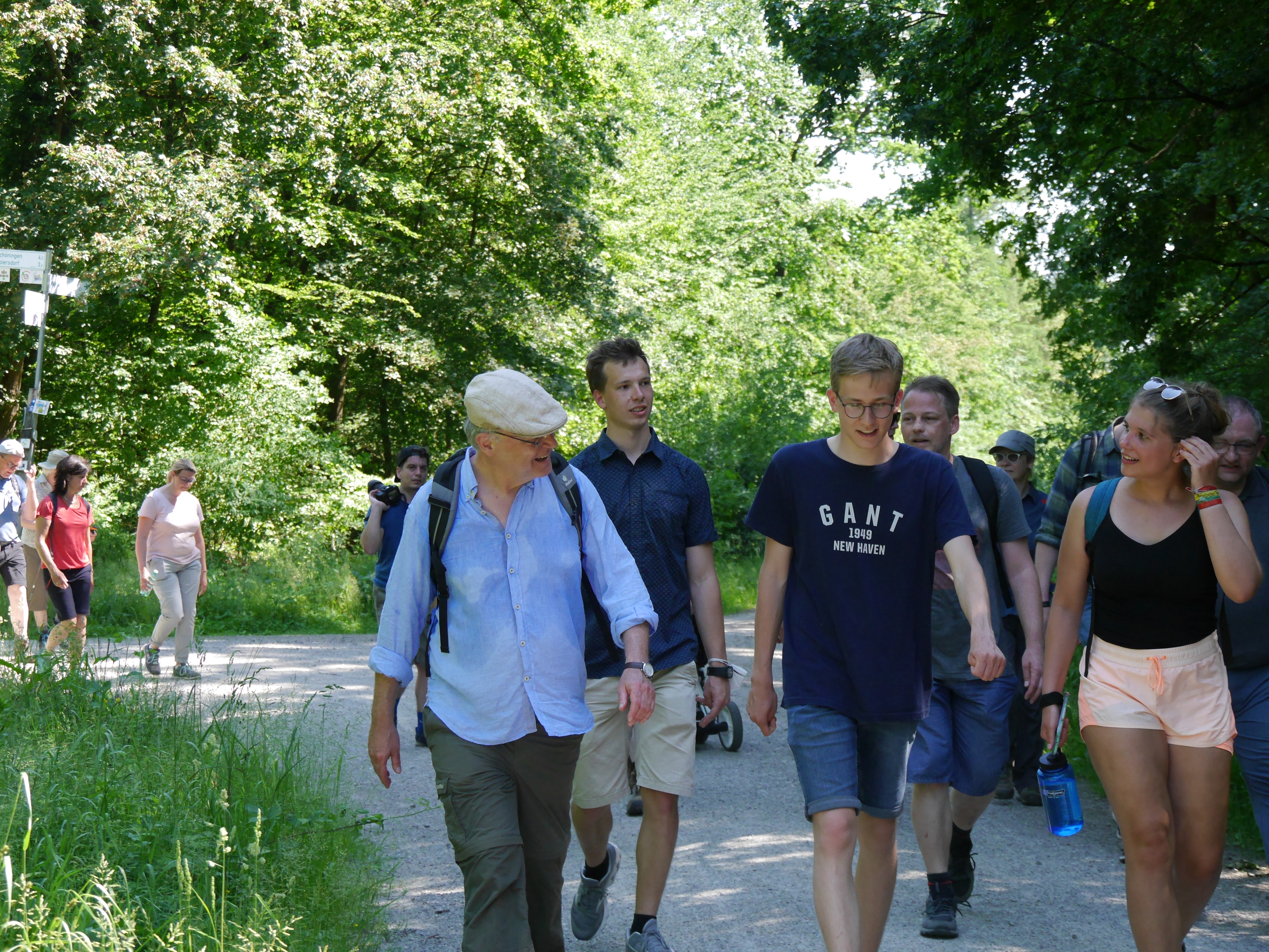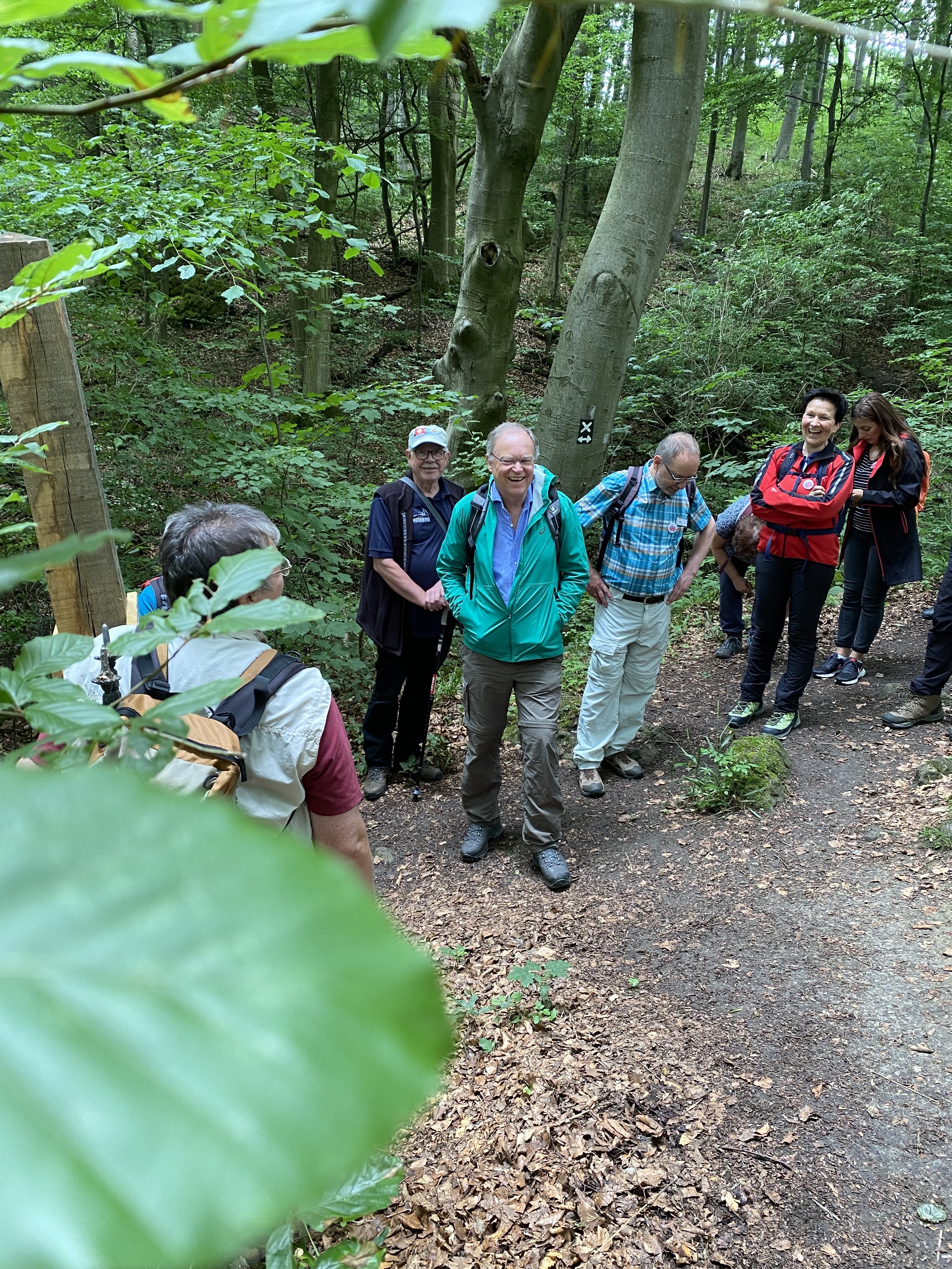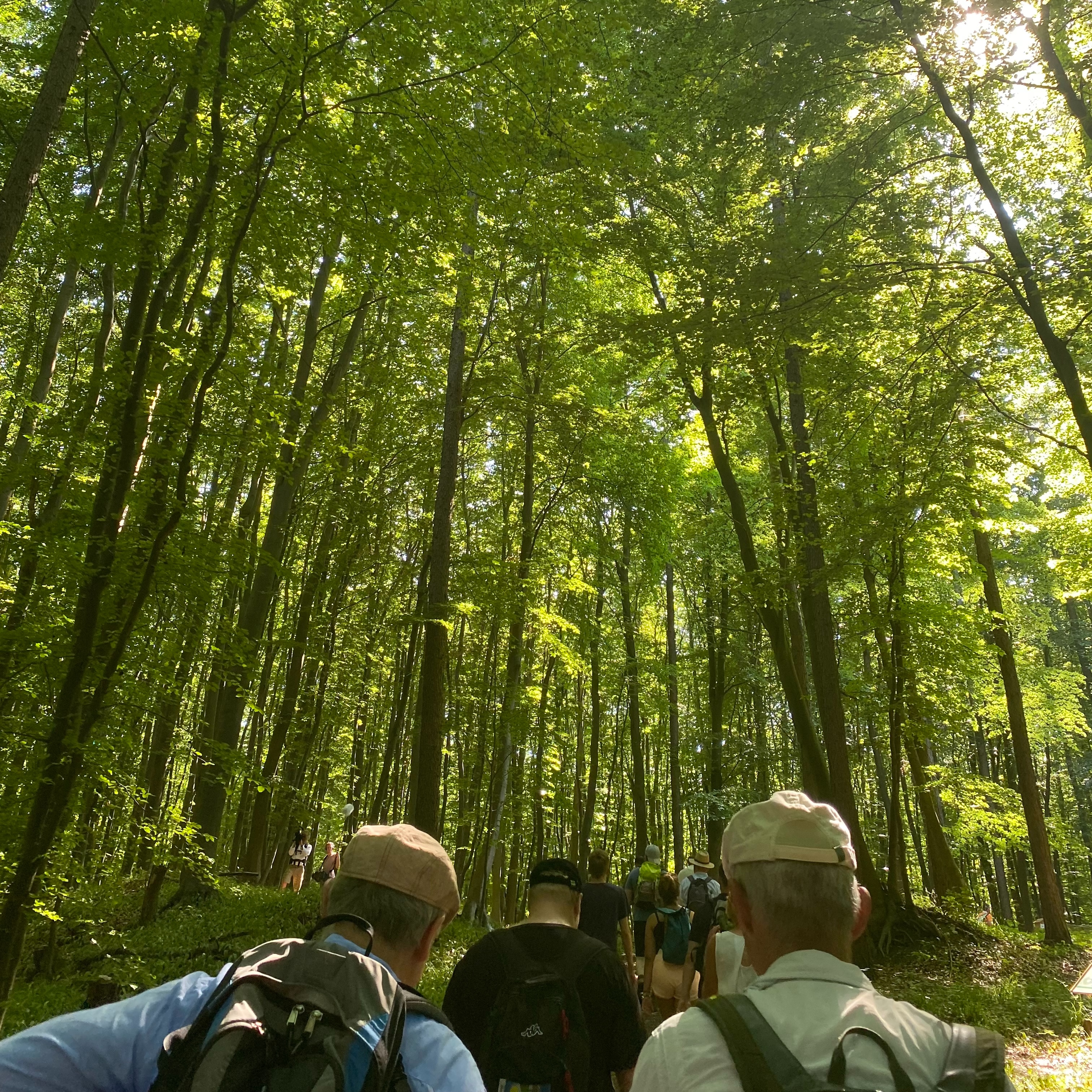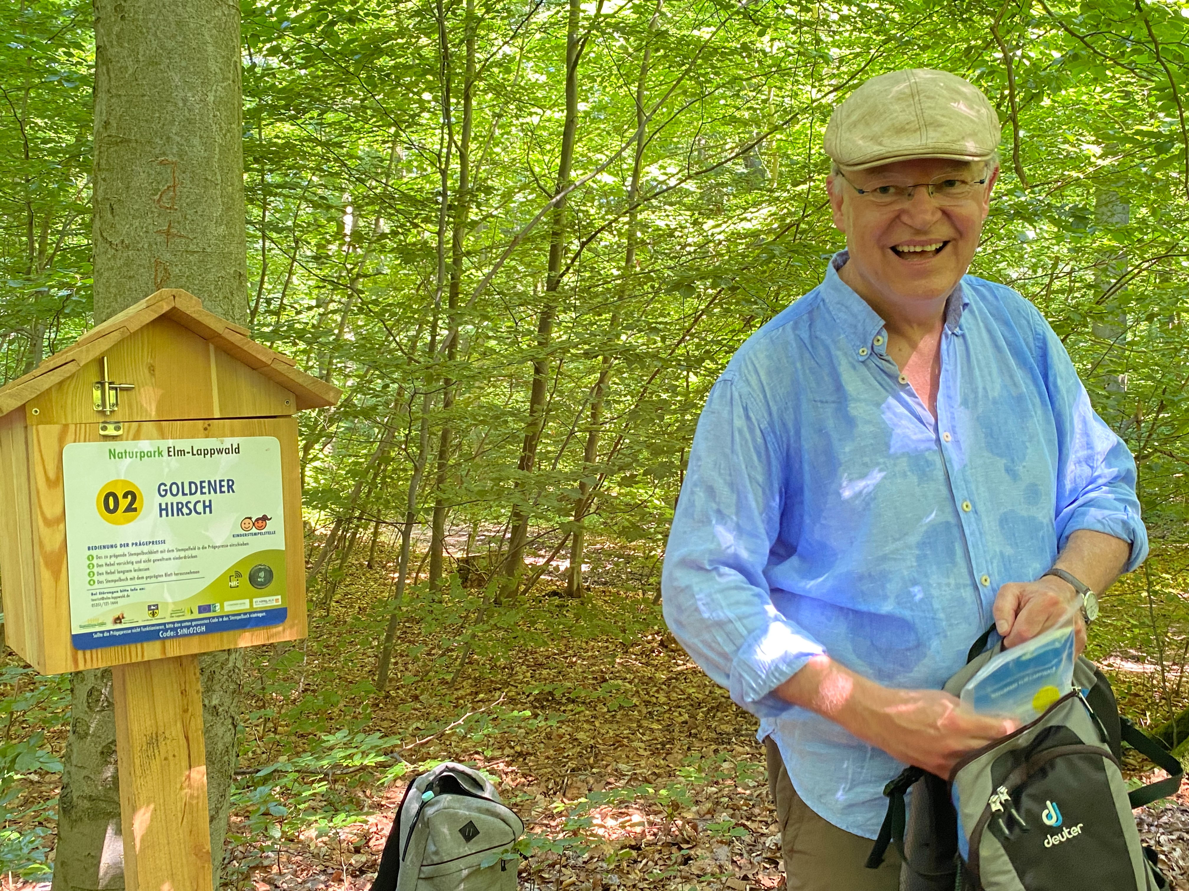 Ein Kontrastprogramm erwartete den Ministerpräsidenten bei der zweiten Wanderung: Auf dem Elm-Kreisel bei Schöningen im Landkreis Helmstedt führte der Weg durch Norddeutschlands größten Buchenwald. Die Schatten spendenden Bäume waren bei sommerlich heißen Temperaturen ein echter Segen für alle Wanderer*innen.