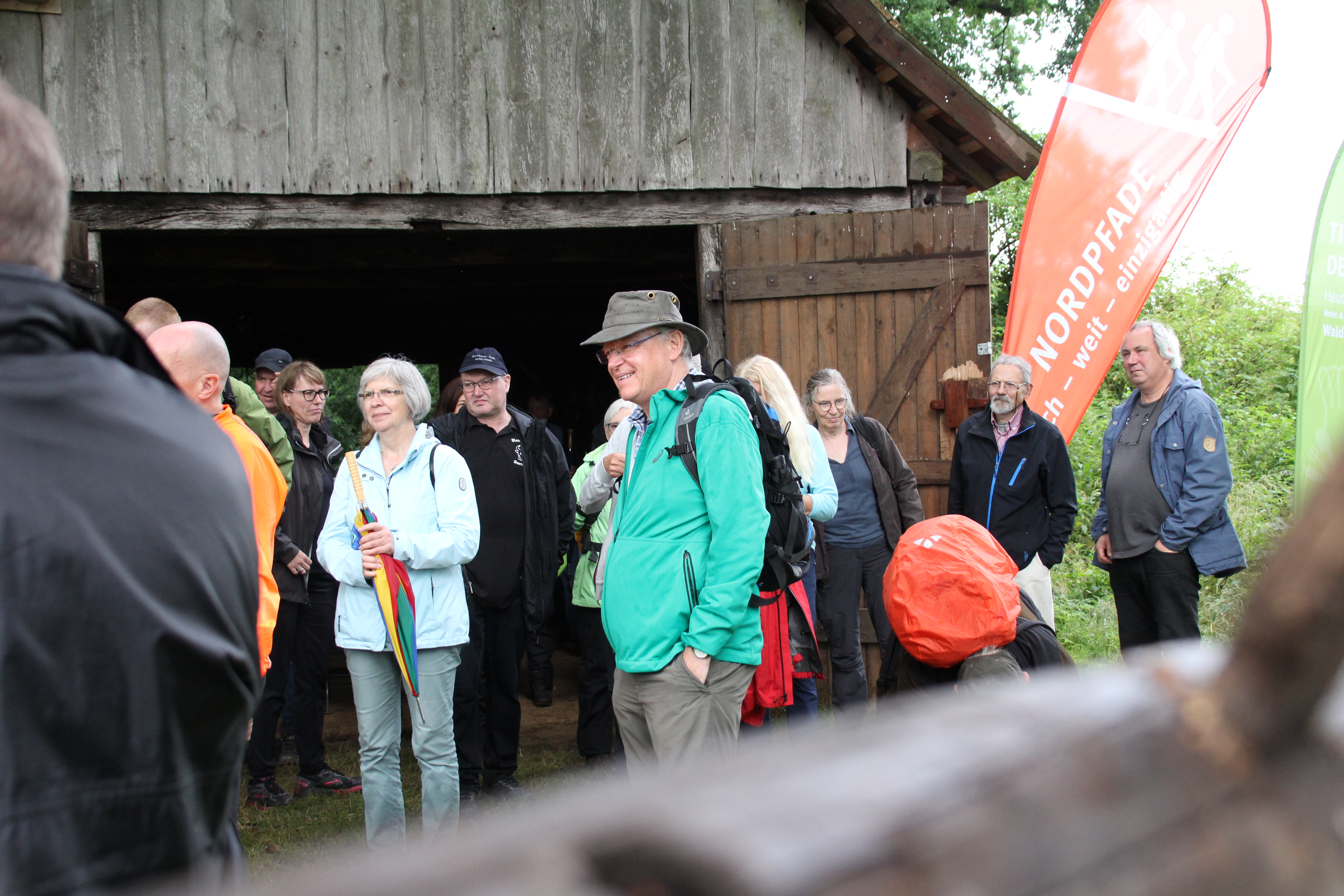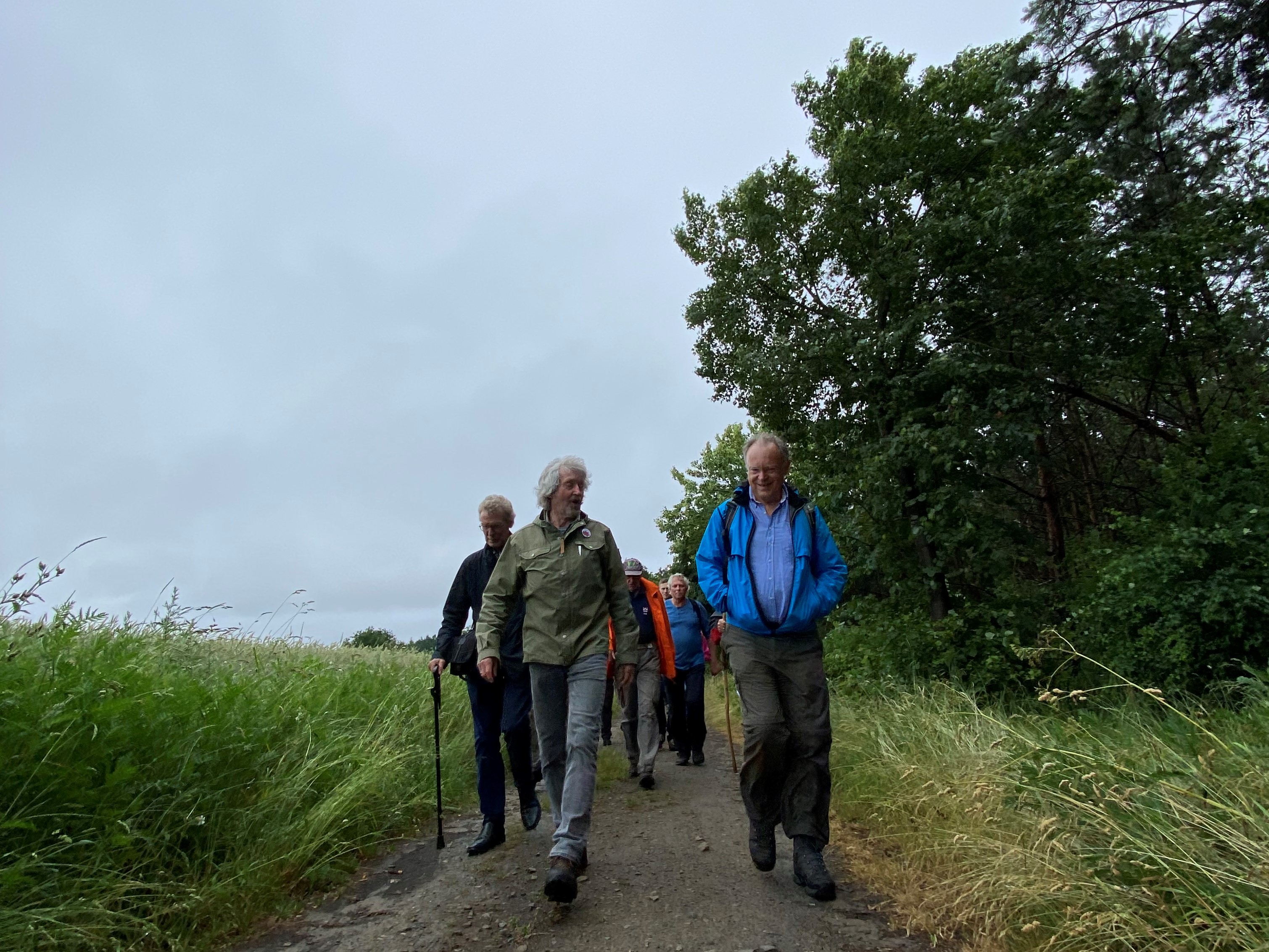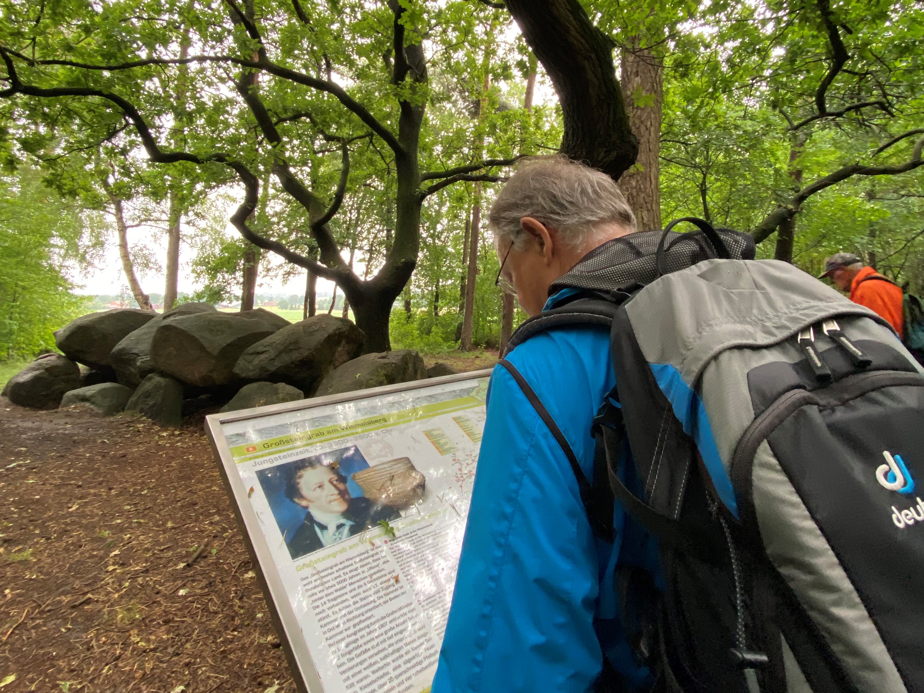 Die dritte Wanderung zum Landesjubiläum verlief auf dem Hünenweg durchs Osnabrücker Land. Nach zwei Hitze-Touren gab es diesmal viel Abkühlung von oben. Der guten Laune und den guten Gesprächen hat das nicht geschadet – auch, weil es neben der Natur viel zu bestaunen gab: etwa eine alte Wassermühle oder Megalithgräber aus der Steinzeit.