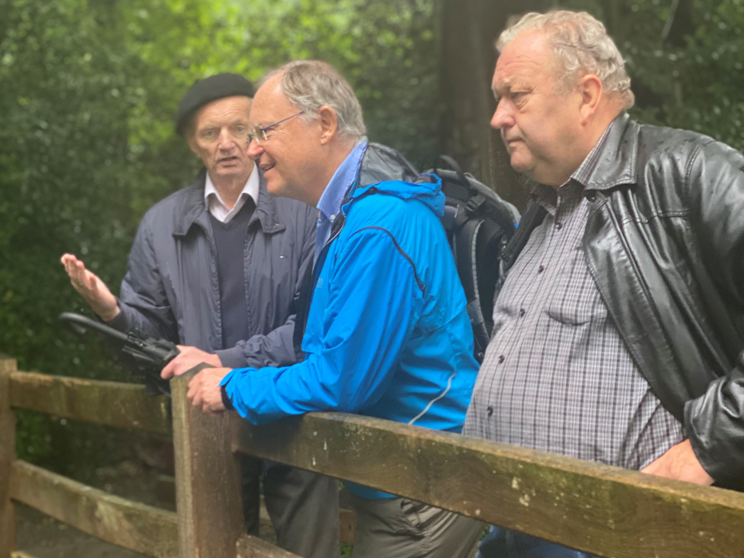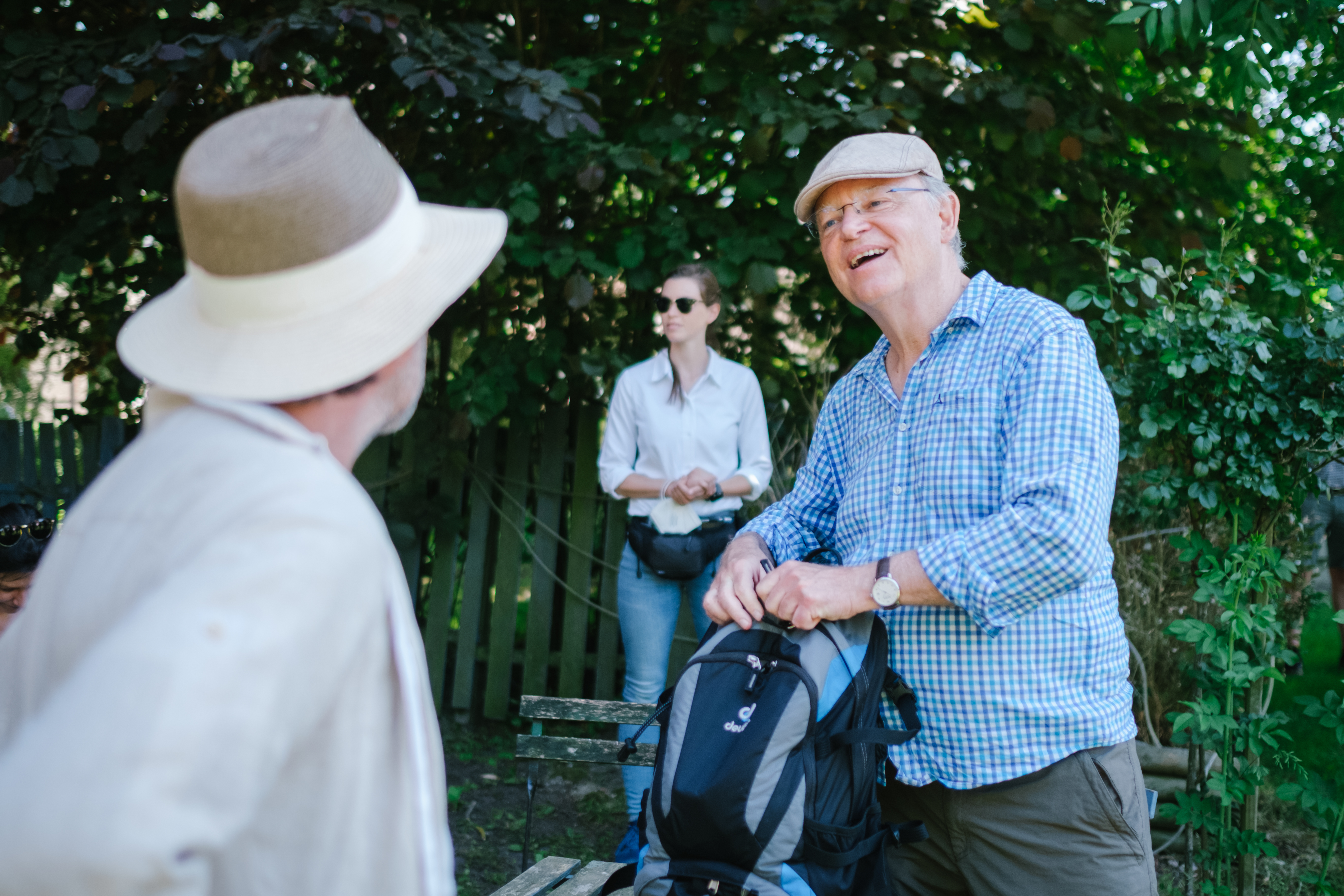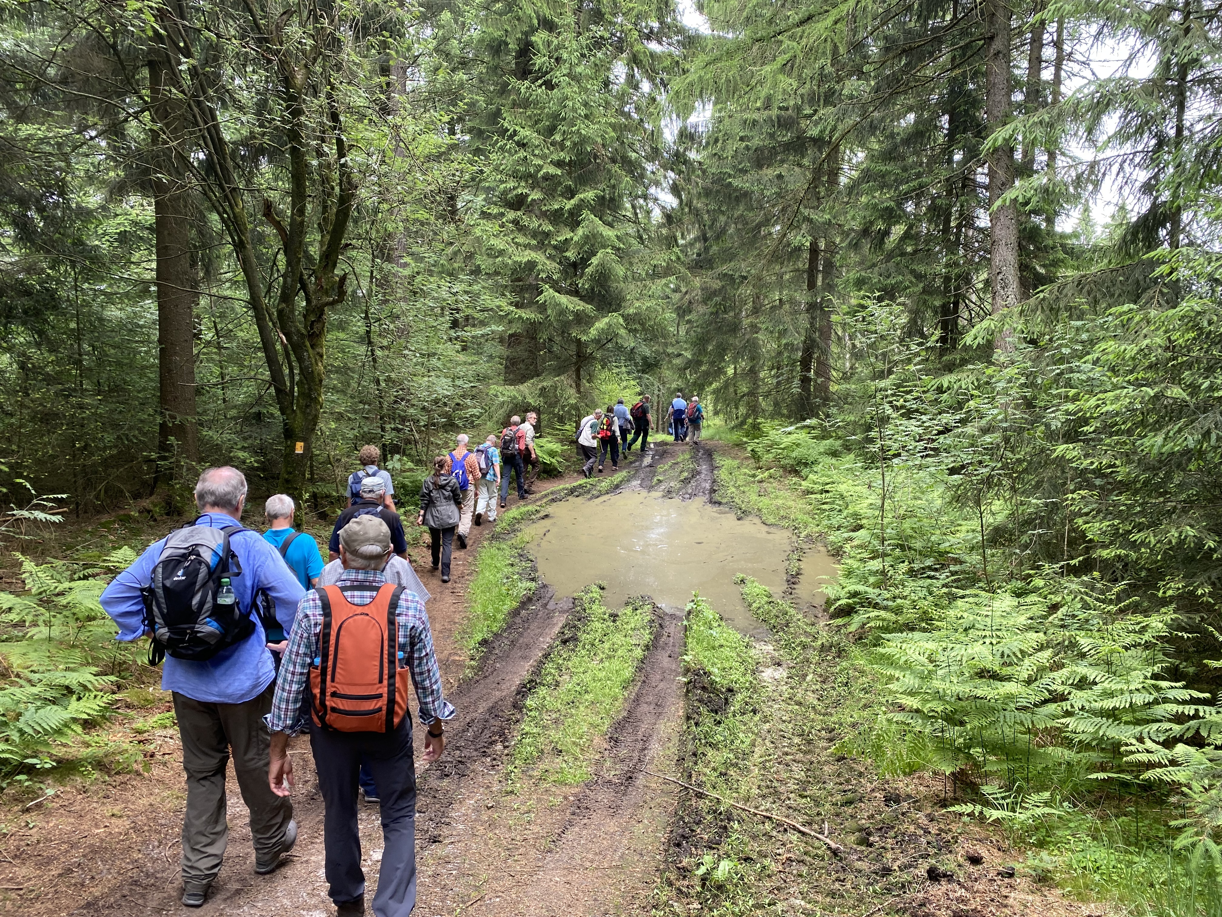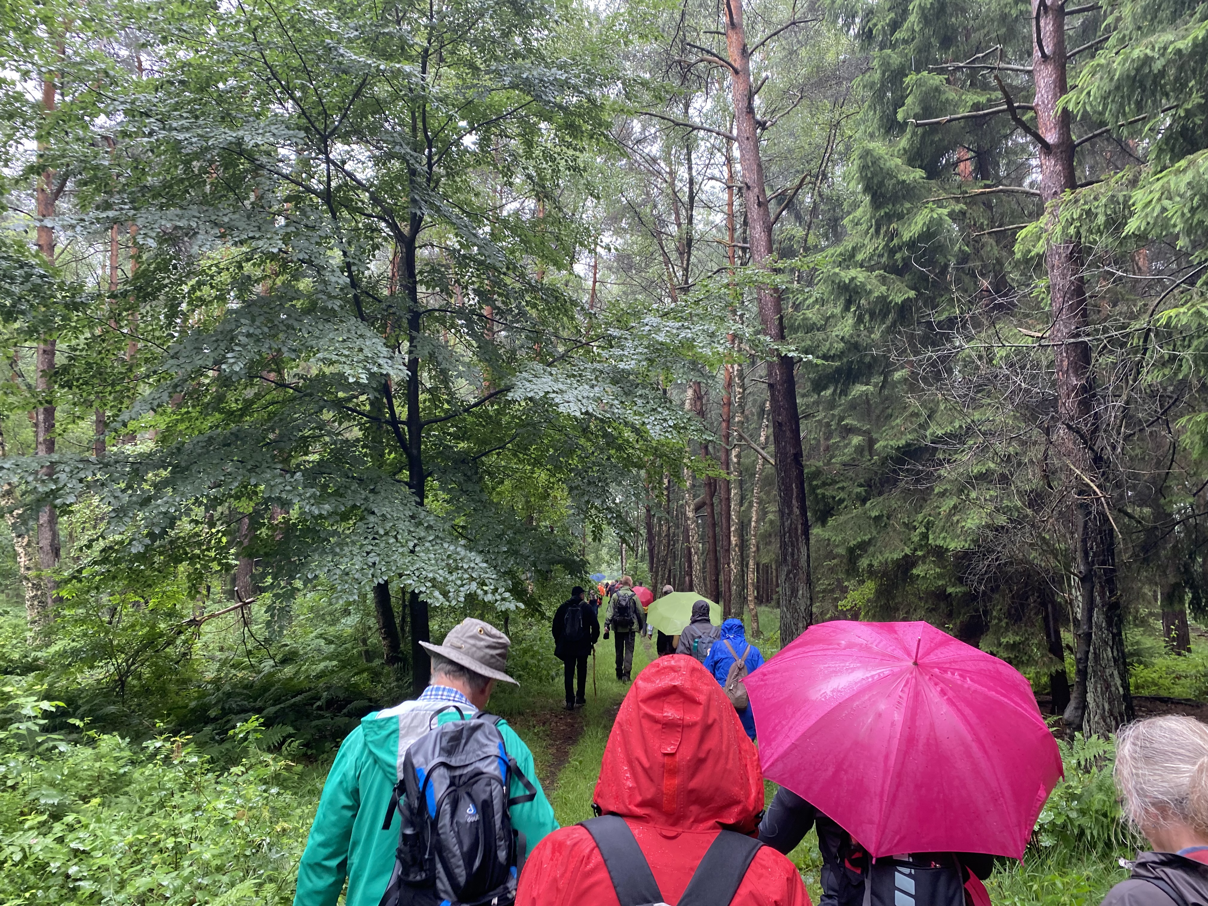 Die dritte Wanderung zum Landesjubiläum verlief auf dem Hünenweg durchs Osnabrücker Land. Nach zwei Hitze-Touren gab es diesmal viel Abkühlung von oben. Der guten Laune und den guten Gesprächen hat das nicht geschadet – auch, weil es neben der Natur viel zu bestaunen gab: etwa eine alte Wassermühle oder Megalithgräber aus der Steinzeit.