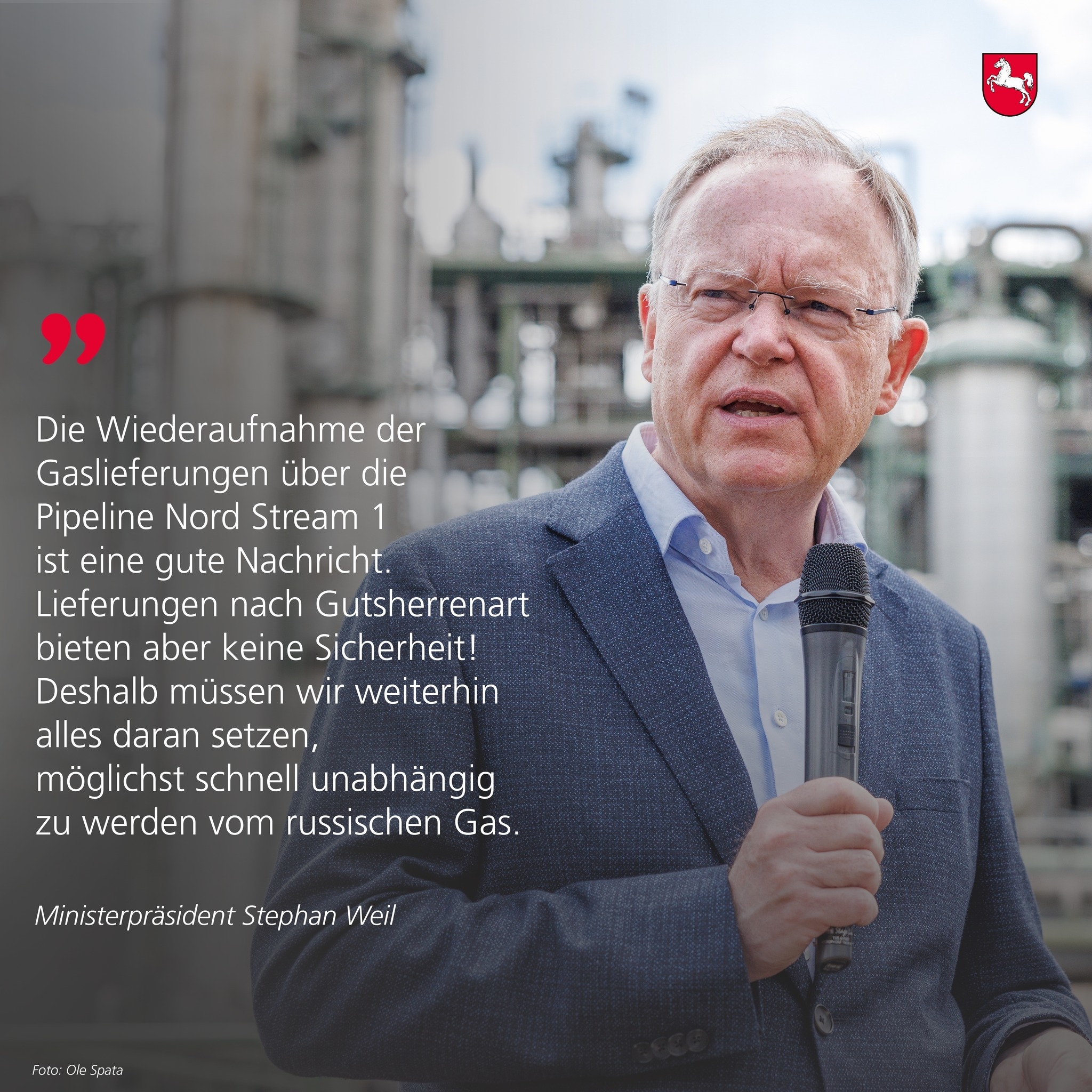 Statement von Ministerpräsident Stephan Weil zur zukünftigen Energieversorgung und zu LNG