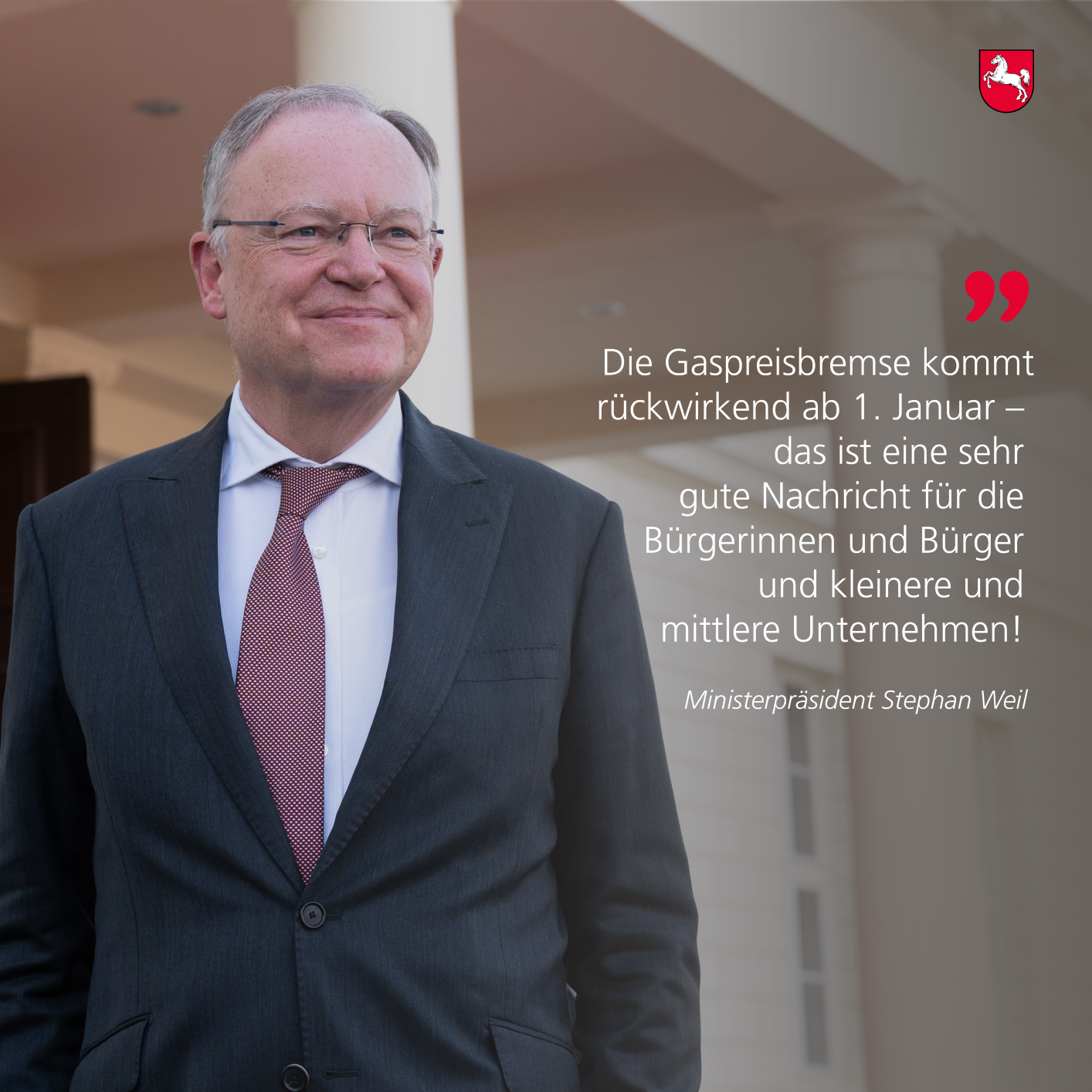 Ministerpräsident Stephan Weil zur Rückwirkung der Gaspreisbremse zum 1. Januar 2023: