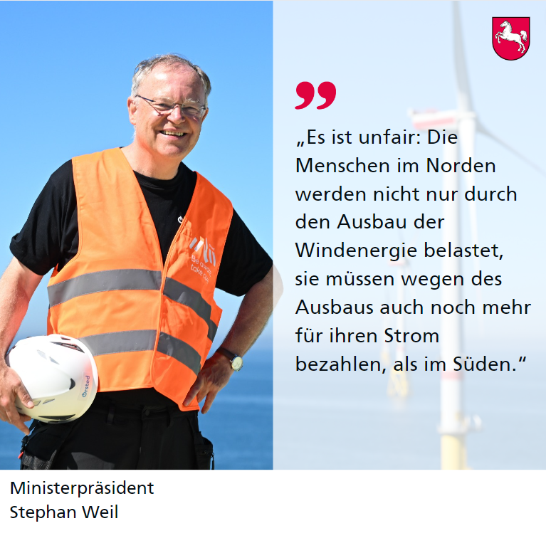 Ministerpräsident Stephan Weil zum Entwurf einer Strompreisreform der Bundesnetzagentur