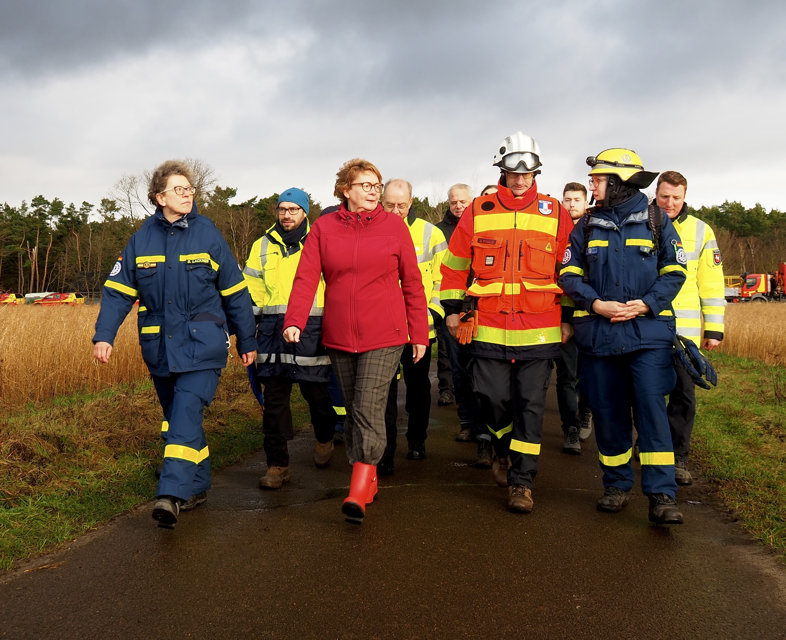 Innenministerin Daniela Behrens im Austausch mit Einsatzkräften beim Hochwasser 2023/2024.
