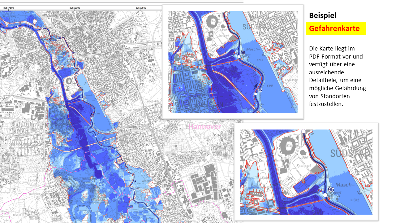 Wie eingangs erwähnt bietet der NLWKN zur Onlinekarte auch Karten für 42 Gewässer mit einem besonderen signifikanten Risiko in Niedersachsen im PDF-Format, die Sie sich für eine Offline-Ansicht oder für einen Ausdruck downloaden können.