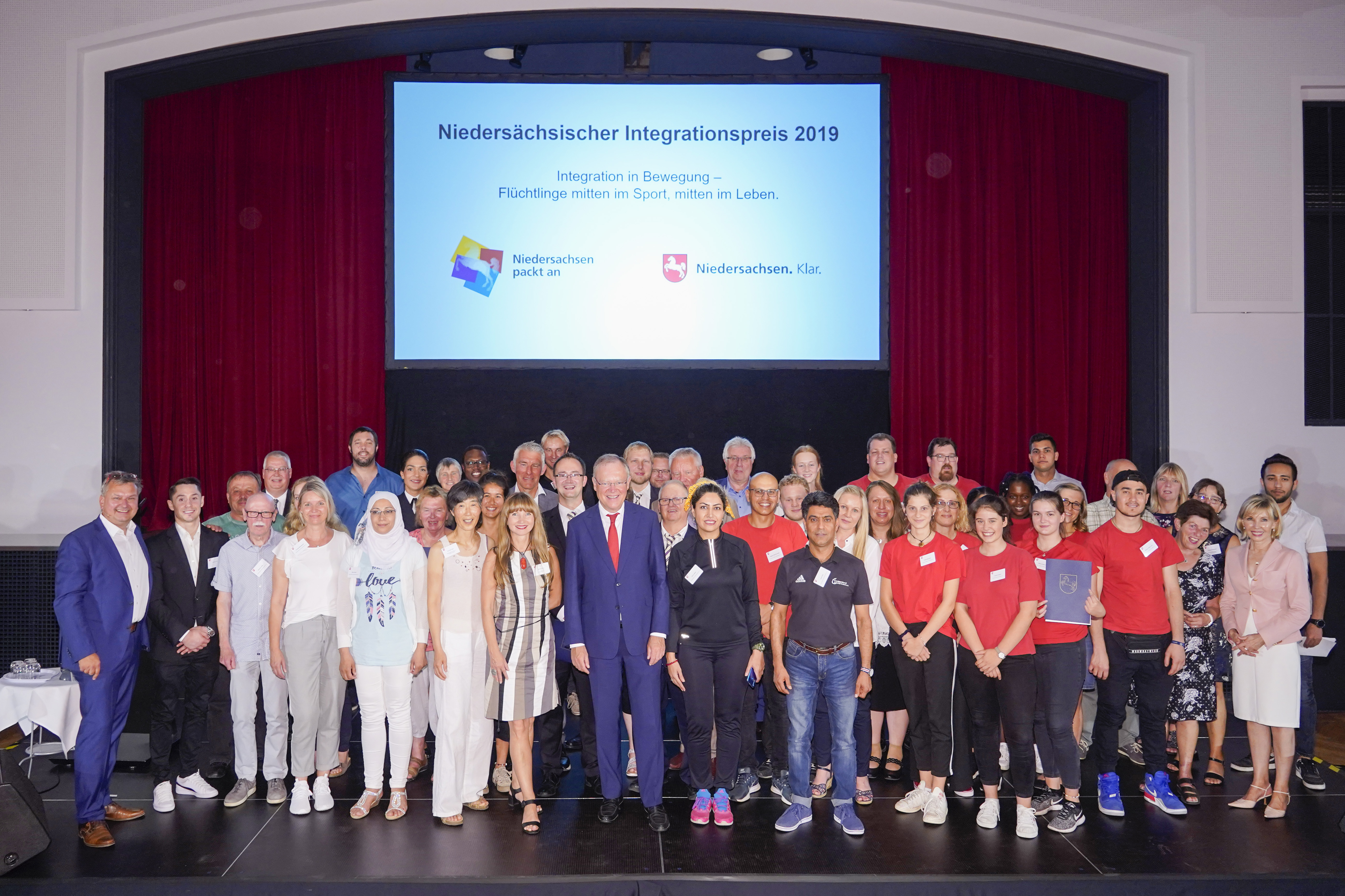 Ministerpräsident Stephan Weil und die Landesbeauftragte für Migration und Teilhabe, Doris Schröder-Köpf, haben an diesem Montag in Hannover gemeinsam mit der Jury den Niedersächsischen Integrationspreis 2019 vergeben. Der Preis steht unter dem Motto „Integration in Bewegung – Flüchtlinge mitten im Sport, mitten im Leben“ und ist mit insgesamt 24.000 Euro (vier Mal je 6.000 Euro) dotiert. In diesem Jahr wurde der Preis bereits zum zehnten Mal vergeben.