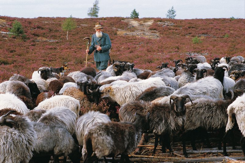 Schäfer mit Heidschnuckenherde in der Nemitzer Heide