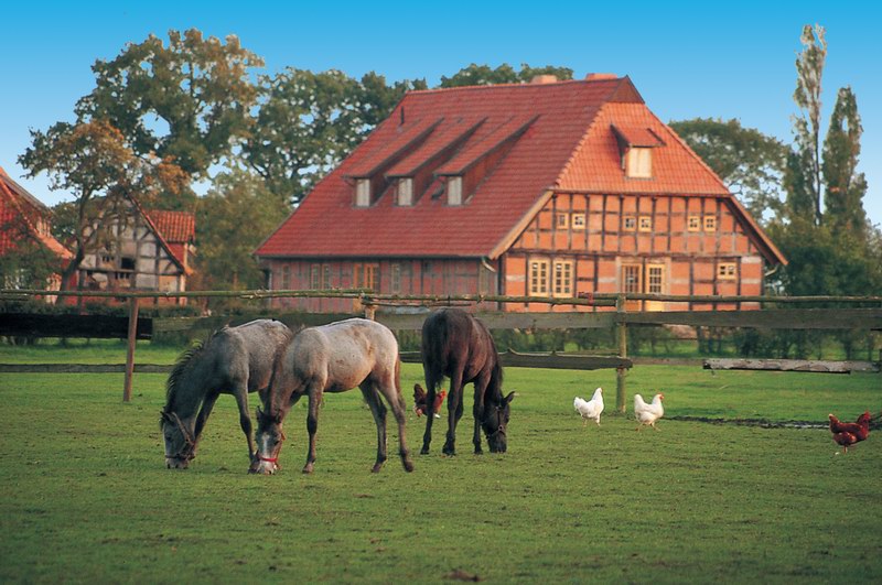 Bauernhof mit Pferden in der Region Mittelweser