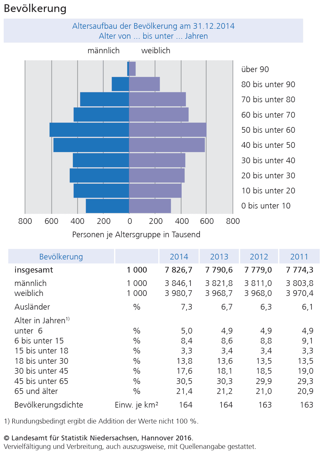 Statistische Informationen über die Bevölkerung des Landes Niedersachsen