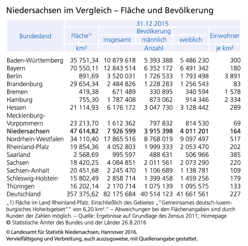 Quelle: Landesamt für Statistik, Niedersachsen in Zahlen 2015