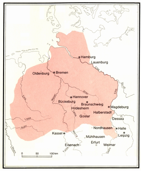 Nach dem Aussterben der Ottonen (1024) begann der Stamm, der bis dahin das Königtum getragen hatte, von diesem, das an die rheinischen Salier übergegangen war, beherrscht zu werden. 1073 kam es zum Aufstand der Sachsen gegen den König, gegen Heinrich IV. Ein labiler Friede nur konnte 1075 geschlossen werden; die von mächtigen Grafen des Landes getragene Opposition mündete in den Investiturstreit, in den Kampf zwischen Kaiser und Papst um das Besetzungsrecht der Bistümer, ein. Als schließlich 1122 der Kompromiß in diesem Streit gefunden wurde, war es wieder der sächsische Herzog, Lothar von Süpplingenburg, der 1125, nach dem Aussterben der Salier, zum König gewählt wurde. Durch Heirat hatte Lothar ein beträchtliches Eigengut im Lande gewonnen, der Söhnelose vererbt es seinem Schwiegersohn, Heinrich dem Stolzen, mit dem die Welfen, die mit den Staufern konkurrierende Dynastie aus karolingischem Hochadel, in Sachsen heimisch werden. Sein Sohn war der bereits in seiner Bedeutung für die sächsische Geschichte erwähnte Heinrich der Löwe. Die Folgen des Sturzes dieses Herrschers, der zugleich auch Herzog von Bayern gewesen war, schienen rückgängig gemacht werden zu können, als 1198 sein Sohn Otto IV. in einer Doppelwahl von einem Teil der Fürsten zum König ausgerufen wurde.