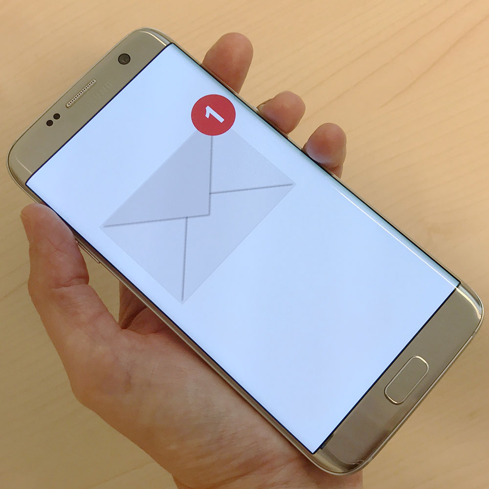 Hand, die ein Smartphone hält, auf dem eine neue Nachricht angezeigt wird.