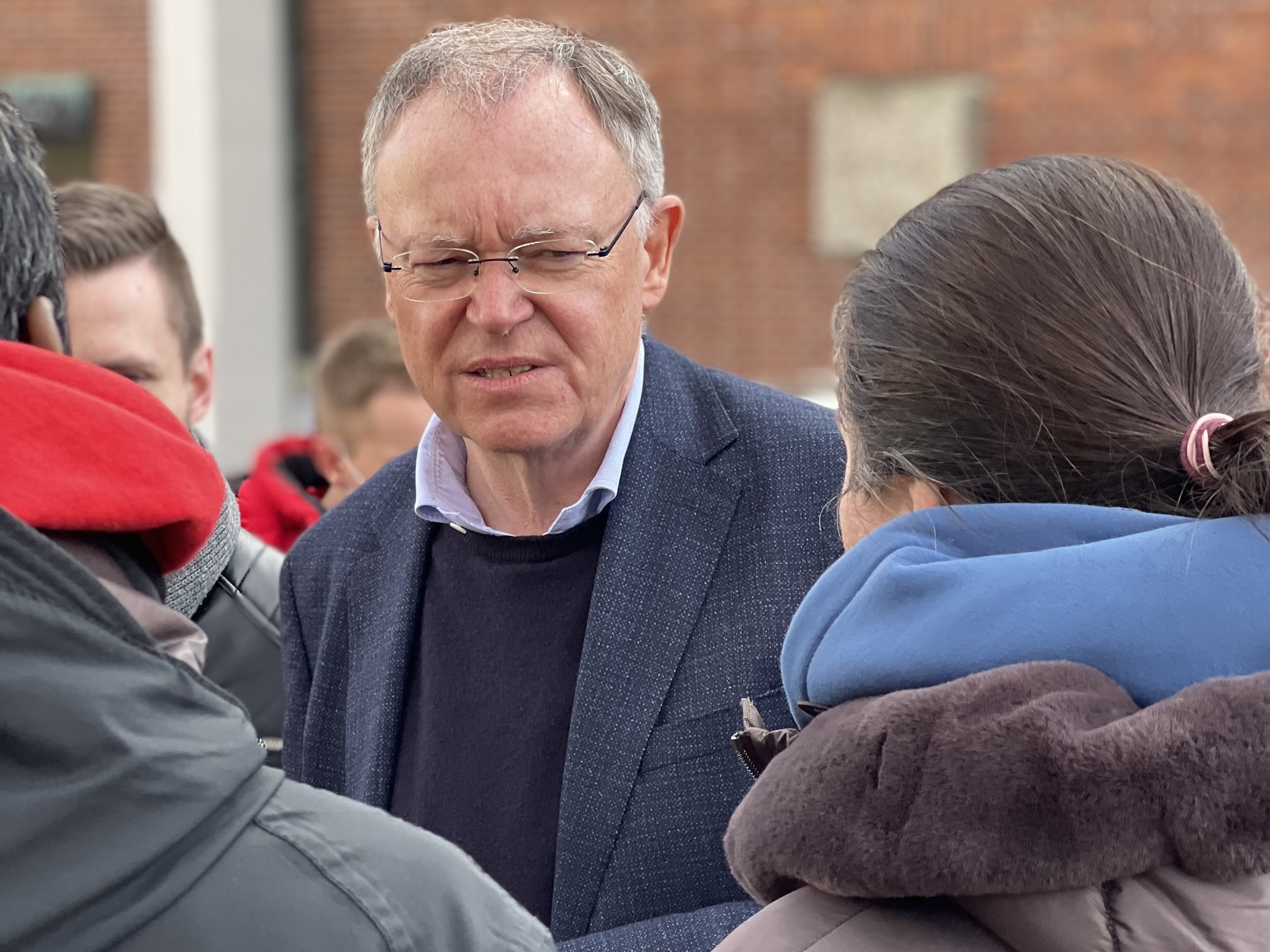 Ministerpräsident Stephan Weil spricht mit Geflüchteten in der Landesaufnahmebehörde
